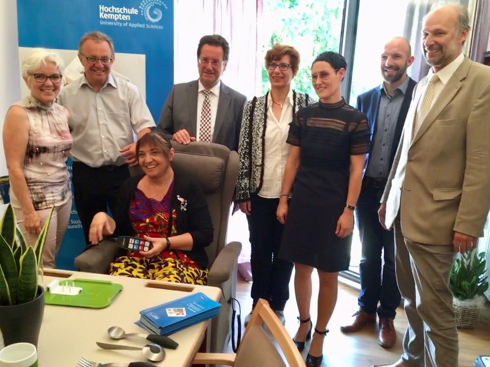 In der Seniorenwohnanlage der BSG in St. Mang wurde von der Hochschule Kempten eine Projektwohnung eingerichtet, in der Assistenzsysteme und altersgerechte Ausstattungen entwickelt, erforscht und getestet werden. Gemeinsam mit der Bundestagsabgeordneten Ekin Deligöz informierten sich Thomas Gehring (Mitglied des Landtags) und Erna-Kathrein Groll (Landtagskandidatin der Grünen) über technische und bauliche Entwicklungen, die Menschen mit Einschränkungen ein selbstbestimmtes Wohnen in den eigenen vier Wänden möglich machen können. Prof. Dr. Robert Schmidt, Präsident der Hochschule, betonte in seiner Begrüßung, dass dieses fachübergreifende Projekt die Mission der Hochschule Kempten ‚Kompetenz durch vernetzte Vielfalt‘ beispielhaft mit Leben füllt. Bevor der Projektbetreuer, Ingenieur Alexander Karl, die vielen Details der 55 Quadratmeter großen Wohnung demonstrierte, gab die Projektleiterin Prof Dr.-Ing. Friedrich den Besuchern einen fundierten Überblick über das sog AAL-Lab (Ambient Assistent Living). „Ein Ziel der Wohnung ist es, unsere Studierenden mit den wesentlichen Aspekten der AAL-Technik vertraut zu machen und an der Entwicklung neuer Anwendungen praxisnah zu arbeiten“ resümierte sie den Lehrauftrag der kooperierenden Fachbereiche Elektrotechnik sowie Soziales und Gesundheit, den Prof. Dr. Zacher in der Projektleitung vertritt. „Wir müssen die Kooperation des Mittelstandes mit den Hochschulen intensivieren“, forderte Ekin Deligöz, die als Mitglied des Haushaltsausschusses bedauerte, dass bereit gestellte Mittel oft nicht abgerufen würden. Thomas Gehring wies auf die positive Haltung von B90/Die Grünen zur Forschung hin. „Unser Ziel ist es die Forschung weiter zu fördern, sehen uns dabei aber auch als kritische Begleiter und achten darauf, dass zum Wohle der Menschen geforscht wird.“ Erna-Kathrein Groll, die sich besonders das Thema Pflege auf die Fahne geschrieben hat, sieht in der intelligenten Kombination von Assistenzsystemen neben der Hilfe für die Bewohner vor allem auch die Entlastung der Pflegenden. „Das hilft mit, diesen Beruf wieder attraktiver zu machen.“ Die grünen Politiker waren erstaunt und begeistert zugleich über die vielfältigen Unterstützungsmöglichkeiten. Diese reichen von Hightech, wie mit Sensoren ausgestatteten Fußböden, an Tageszeiten angepasste Beleuchtung oder einer Toilette, die Gesundheitsdaten ermitteln kann über elektrische Schrankbedienung bis zu einfachen Haltegriffen oder zweckmäßigem Geschirr und Besteck. Der Besuch war ein gelungener Austausch zwischen Politik und Forschung, weil praktische Ergebnisse die Notwendigkeit und Sinnhaftigkeit von gezielter Forschungsförderung unterstreichen.