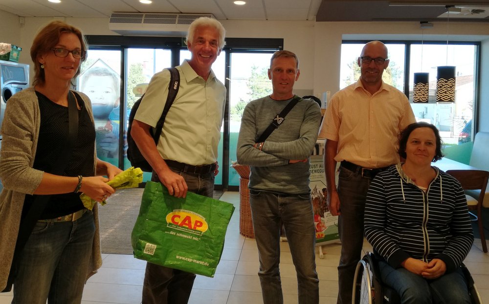 „Gute Nahversorgung vor Ort und gleichzeitig gelungene Integrationsarbeit, das bietet der CAP-Markt in Betzigau“, so Erna-Kathrein Groll, Stadträtin und Landtagskandidatin der Grünen, die zusammen mit dem Grünen Landtagsabgeordneten, Thomas Gehring, den Lebensmittelmarkt in Betzigau besuchte. Das Konzept des Marktes sei so genial wie einfach. Im Betzigauer CAP-Markt werden bis zu fünfzig Prozent aller Arbeitsstellen von Menschen mit Behinderung besetzt. Sie arbeiten dort ihren jeweiligen Fähigkeiten entsprechend und leisten verantwortungsvolle, qualitativ hochwertige Arbeit. „Die Kunden erleben in unserem Markt Normalität und gute Dienstleistung“, so Reinhold Scharpf, von Körperbehinderte Allgäu und Geschäftsführer. „Uns ist immer wichtig Menschen mit Handicap in sozialversicherungspflichtige Arbeitsplätze zu bringen und hier in Betzigau wird deutlich, dass dies auch möglich ist.“ Allerdings brauche es dafür auch die Unterstützung von der Politik, denn die Hürden in den behördlichen und bürokratischen Vorgaben sind hoch und machen die reale Umsetzung oft unnötig schwer. „Hier in Betzigau ist uns das Miteinander sehr gut gelungen“, so der dritte Bürgermeister Joachim Borghoff. „Wir konnten ein Gesamtkonzept entwickeln, das mit dem CAP-Markt, Arztpraxis, barrierefreien Wohnungen mitten im Ort neben dem Einkaufen auch einen wertvollen Ort der Begegnung geschaffen hat.“ Thomas Gehring und Erna-Kathrein Groll waren beeindruckt von dem durchdachten Konzept, das alle Aspekte vom klimaschützenden Bauwerk, über die Inklusion für Mitarbeiter und Barrierefreiheit für Kunden bis zum hervorragenden Dienstleistungsangebot alles im Blick hat. „Wir werden uns dafür einsetzen, dass diesem Beispiel viele weitere in Bayern folgen können und die Bürokratie kein unüberwindbares Hindernis dafür sein darf“, so die Grünen Landtagskandidaten Thomas Gehring und Erna-Kathrein Groll.