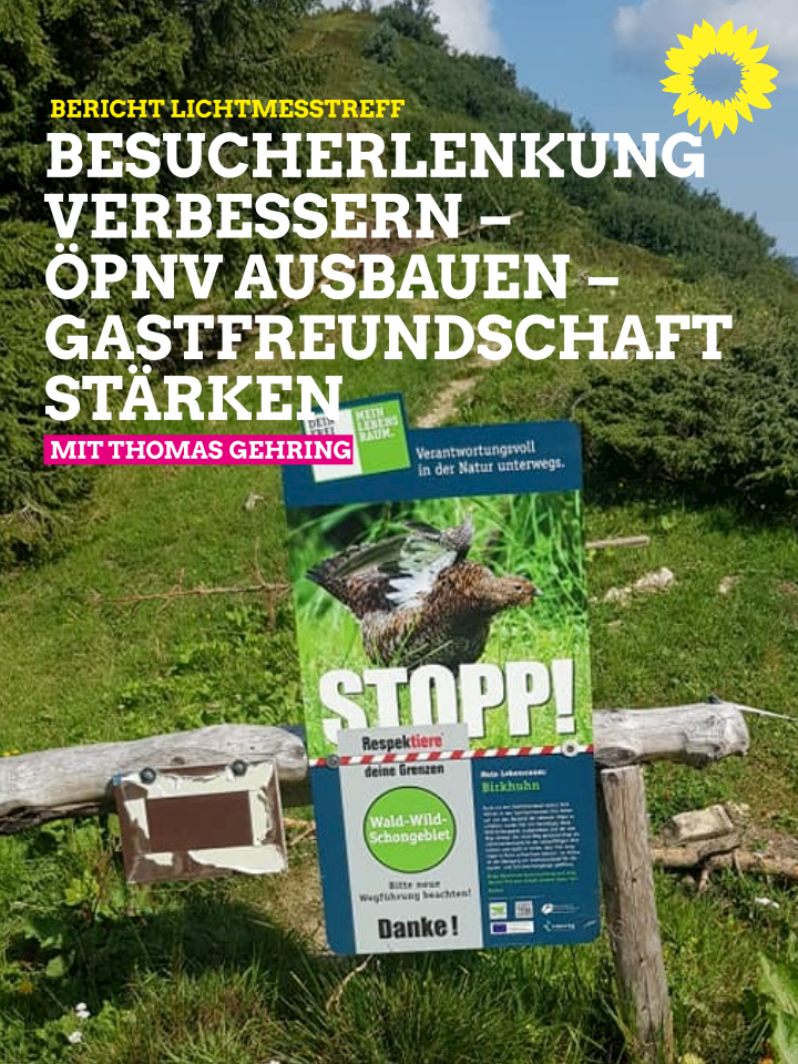 Kempten/Oberallgäu 07.02.2021 Gastfreundschaft erhalten und den Tourismus im Allgäu trotz Besucherandrang positiv gestalten, das ist Thomas Gehring, Grüner Landtagsabgeordneter aus Gunzesried besonders wichtig. Aus diesem Grund hatte Thomas Gehring zum Grünen Lichtmesstreffen Ethelbert Babl, vom Zentrum Naturerlebnis Alpin (ZNAlp) und Rolf Eberhardt, vom Naturpark Nagelfluhkette eingeladen, um mit ihnen und den Mitgliedern der Allgäuer Grünen Kreisverbände die aktuelle Situation und zukünftige Lösungsmöglichkeiten zu diskutieren.