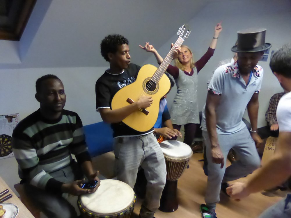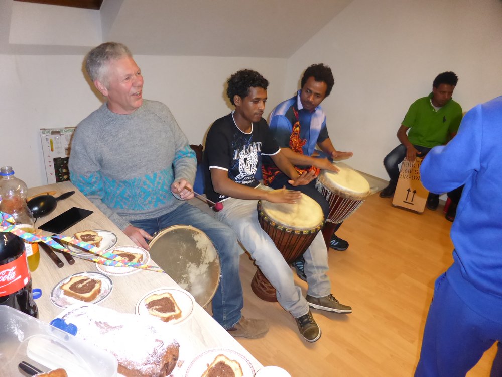 Seitdem setzen sich Michael Speith, Andreas Herzner und Karin Lucke-Huss als Ansprechpartner mit vielen anderen hochengagierten Helfern aktiv für die inzwischen 48 Flüchtlinge ein. Sie unterrichten sie seit mittlerweile 13 Monaten ehrenamtlich an 5 Tagen der Woche, organisieren regelmäßige Einkaufsfahrten, Arzt- und Ämterbesuche, veranstalteten Feste, stellten interessante Sportprogramme wie die Teilnahme an einem Fußballturnier (zweiter Platz für die Flüchtlingsmannschaft!) und an Laufwettbewerben, Skilanglaufunterricht und Verkehrsunterricht auf den gespendeten Fahrrädern auf. Die Helfer hielten schon zwei Integrationskurse für Syrer und Eritreer mit professionellen Übersetzern und informierten außerdem auf Einladung des Kolpingwerkes die interessierten Wiggensbacher über die aktuelle Situation. Am schönsten für alle sind die Einladungen der Flüchtlinge an die Helfer, eritreische, syrische, pakistanische und afghanische Küche sind nun nicht mehr fremd im Allgäu, sondern aufregende Geschmacks- und Dufterfahrungen.