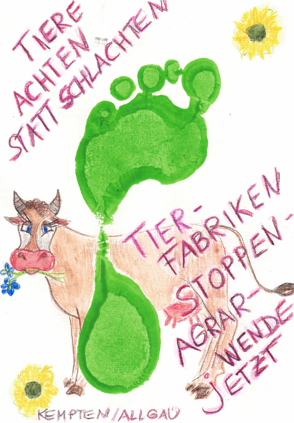 Die Kemptener Grünen setzen sich für eine nachhaltige Wende in der Agrarpolitik ein. Mit der Online-Aktion „Fußabdruck“ haben sie gemeinsam mit der deutschlandweiten Bewegung „Wir haben es satt!“ eine deutliche Botschaft an die CSU- und CDU-geführten Landwirtschaftsministerien in München und Berlin gesandt. Vor einem Jahr demonstrierten die Grünen noch gemeinsam mit Zehntausenden vor Ort in Berlin. In Zeiten von Corona und Abstandhalten geht ihr Einsatz digital weiter.
