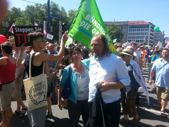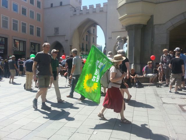 Auch eine Gruppe grüner Freundinnen und Freunde sowie Symathisanten war unter ihnen, die im überfüllten Zug bis München standen.