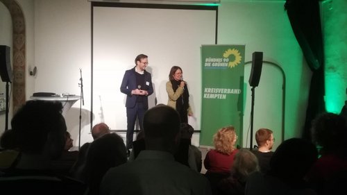Vorab stimmten das Kreissprecherduo Angela Isop und Marc Holland die Gäste auf den Abend ein. Die Grünen in Kempten möchten künftig noch mehr mit anderen Akteuren aus der Gesellschaft zusammenarbeiten. Die zahlreichen – auch nicht-grünen Gäste – zeigten, dass die Grünen bereits jetzt tief in Kempten und dem Allgäu vernetzt sind.