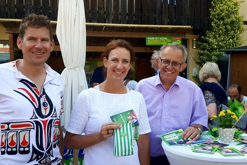 Der sympathische grüne Landtagskandidat und Heimenkirchener Bürgermeister ist auf dieser Radl-Tour voll und ganz in seinem Element: Mit den Menschen auf Augenhöhe sein, ein offenes Ohr für ihre Ängste und Nöte haben, gemeinsam nach Ideen und Lösungen suchen, das sei ganz nach Reicharts Manier.
