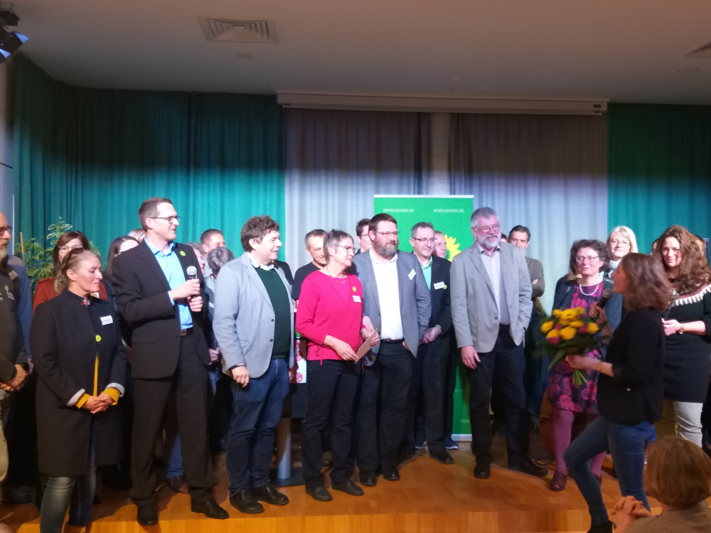 Oliver Schill, grüner OB-Kandidat für Kaufbeuren, stellt vielversprechend und sympathisch die grünen Stadtratskandidaten als grünes "Dreamteam" vor und gibt einen kurzen Überblick über ihre wichtigsten kommunalpolitischen Ziele, insbesondere den Ausbau des Nahverkehrs.