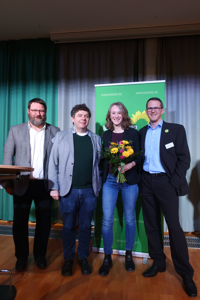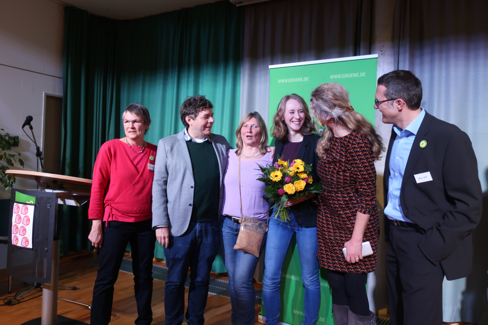 Gastrednerin Eva Lettenbauer, MdL, reißt das Publikum in ihrer Rede mit: Sie sieht die Wahlen im März als „große Chance für den Klimaschutz, für lebendige Orte und für die Teilhabe und das Miteinander aller Menschen, die im Ort leben."