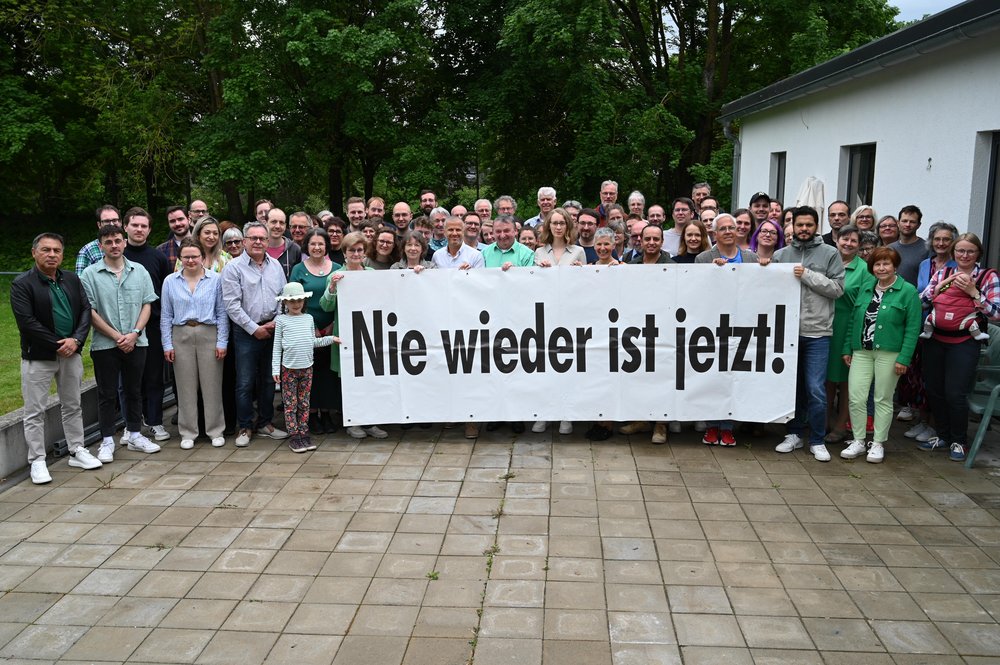 Auf dem Bezirksparteitag in Donauwörth haben die Grünen in Schwaben ein klares Zeichen gegen Rechtsextremismus gesetzt. Mit dem Banner „Nie wieder ist jetzt" erinnert der Bezirksverband anlässlich des bevorstehenden Tags der Befreiung am 8. Mai 1945 an die Gräueltaten des Nationalsozialismus und mahnt vor aktuellen Gefahren für die Demokratie.