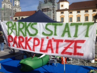 Der Park(ing) Day ist ein internationaler Aktionstag, an dem weltweit (und in diesem Jahr erstmals auch in Kempten) Parkplätze in Freizeitoasen umgewandelt werden. Ziel ist es, auf die ungerechte Verteilung des öffentlichen Raumes zugunsten des Autos aufmerksam zu machen.