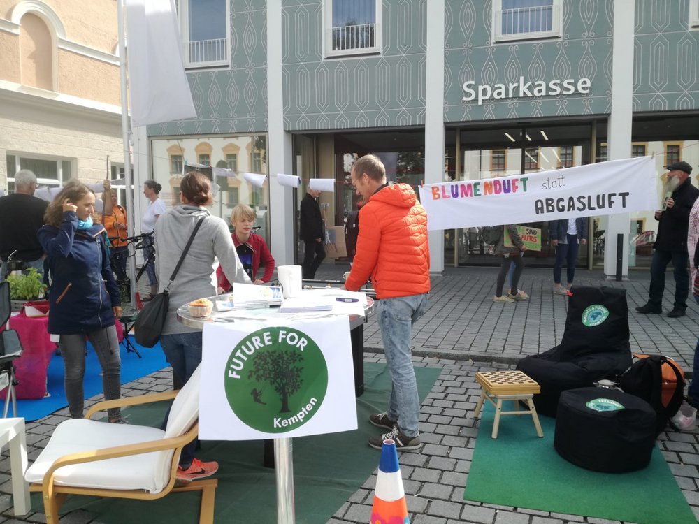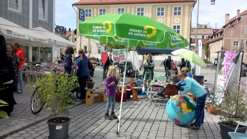 Zum „Parking Day“ hatte das Grünen-Mitglied Gesine Weiß mit ihrem „Freundeskreis für ein lebenswertes Kempten“ aufgerufen und da waren die Grünen natürlich dabei! Gemeinsam mit dem Bund Naturschutz und LBV, Parents for Future, dem ADFC und weiteren Partnern forderten wir: