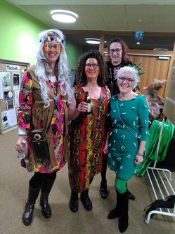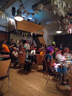 Tolle Kostüme und geistreiche Sketche begeisteren die vielen nicht nur grünen Gäste und die fleißigen Veranstalter*innen. Untermalt von fetziger Live Musik (Thomas Kühling) im coolen grünen Hippie-Look.