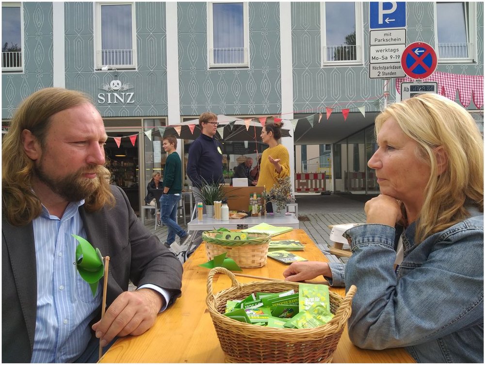 "Bäume und Blumen statt Blech" - unter diesem Motto besuchten Dr. Anton Hofreiter, Fraktionsvorsitzender der Grünen im Bundestag und Thomas Gehring, bayerischer Landtagsvizepräsident, am 17. September den diesjährigen Park(ing) Day am Kemptener Residenzplatz. Auch Pius Bandte, grüner Bundestagskandidat, war mit von der Partie. "Wie schön könnte unsere Stadt sein, wenn nicht überall Autos herumstehen und den öffentlichen Raum blockieren würden!" war die einhellige Meinung vieler Passanten und der Politprominenz.