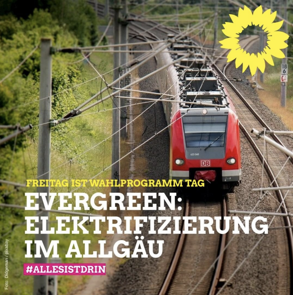 ⚡️Gute Neuigkeiten für’s Allgäu! Die weitere Verzahnung des ÖPNVs und die Elektrifizierung der Bahnstrecken und deren Ausbau sind EverGREENs lokaler politischer Vorhaben, die neuen Rückenwind wenn’s nach uns geht gut gebrauchen können!