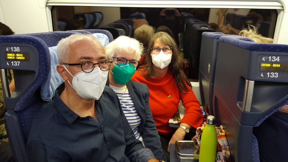 Erna Kathrein Groll, die Delegierte des KV Kempten und Barbara Haggenmüller als Gast reisten zur BDK 2022 nach Bonn und trafen unterwegs noch unser Mitglied Peter Nick.